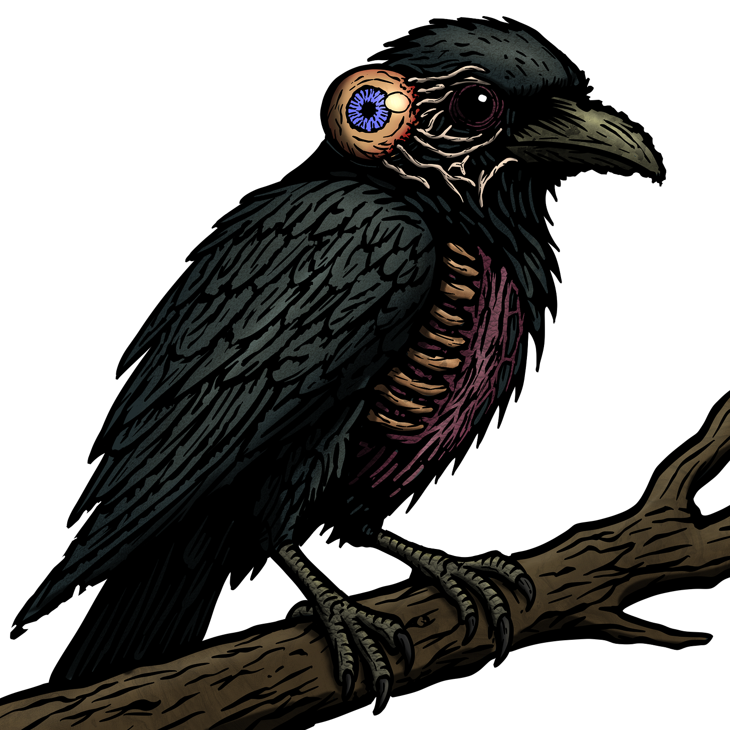 Being scavengers, wandering eyes are not very aggressive, but if defending a nest fight with the statistics of their host. A host might be any living creature of up to 1/2 HD. Mobile forms such as small raptors (Monstrous Manual p. 261) and crows/ravens (Revised Rulebook p.69) are preferred, but rodent, snake, and tarantula hosts have been observed. Damage is dealt to the host first, which has as many hit points as it did when alive, but any excess damage is dealt to, and kills, the wandering eye. A wandering eye detaches from a host as a full-round action, leaving the body inanimate and incapable of further use. Wandering eyes will abandon a still-functional host to escape predators if necessary.